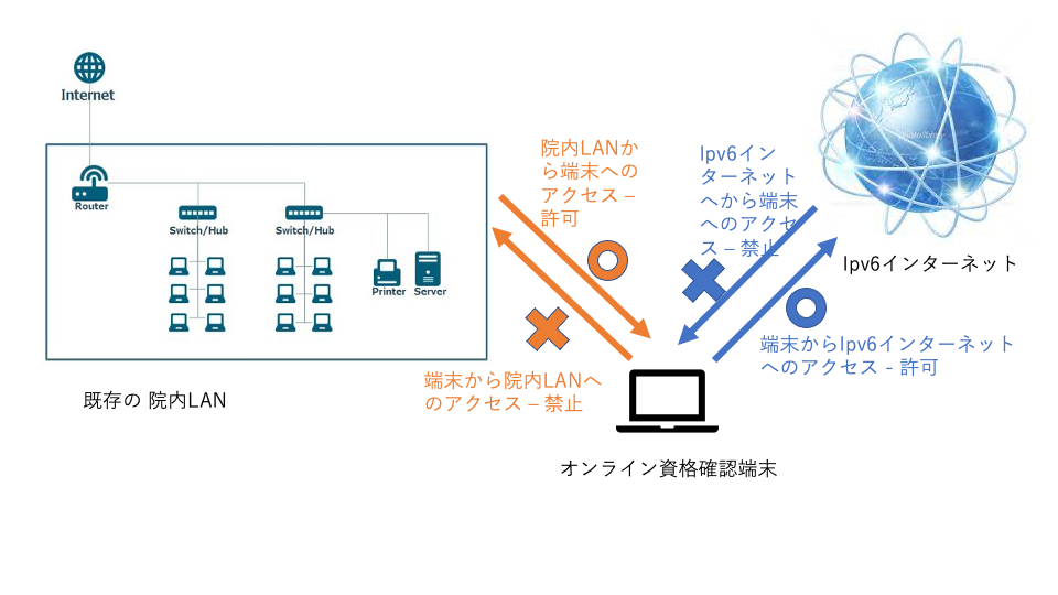 - ipv6からオンライン資格確認端末へのアクセスは禁止する。
