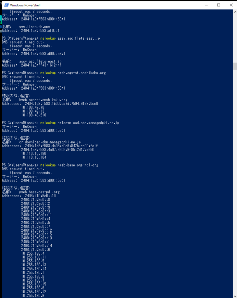 dns server select 53 2404:01A8:F583:0D00::53:1 2404:01A8:F583:0D00::53:2 any managedpki.ne.jp