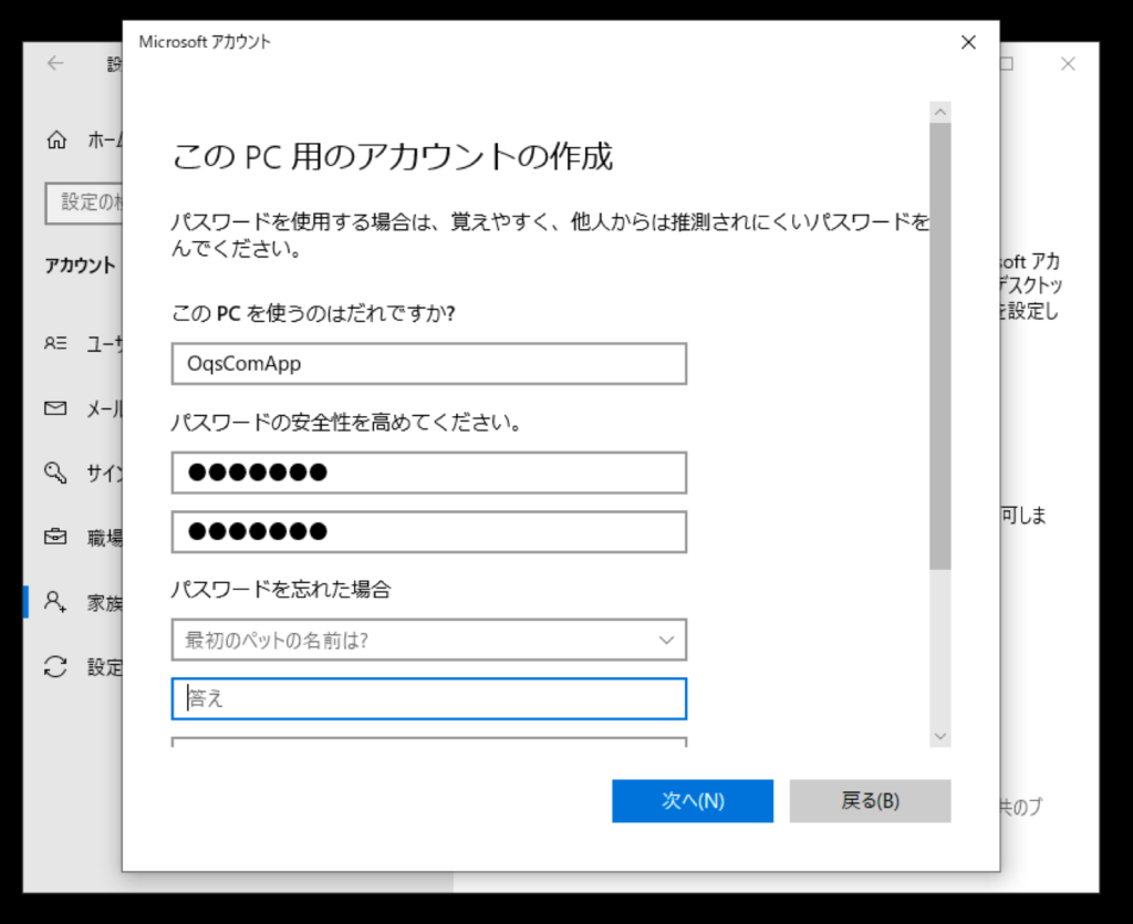 まずは、P.2-3を見て、ユーザーを作成します。ユーザー名がいきなり指定されていますが、どうやらこのユーザー名でなくとも管理者権限であれば、動作するようです。しかし、わかりにくくなるので、このユーザー名を使用するのが(のちのちのサポート面なども考慮すると)良さそうです。