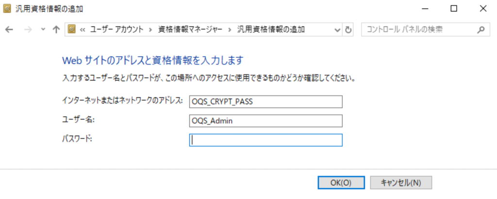 「インターネットまたはネットワークのアドレス」- OQS_CRYPT_PASS