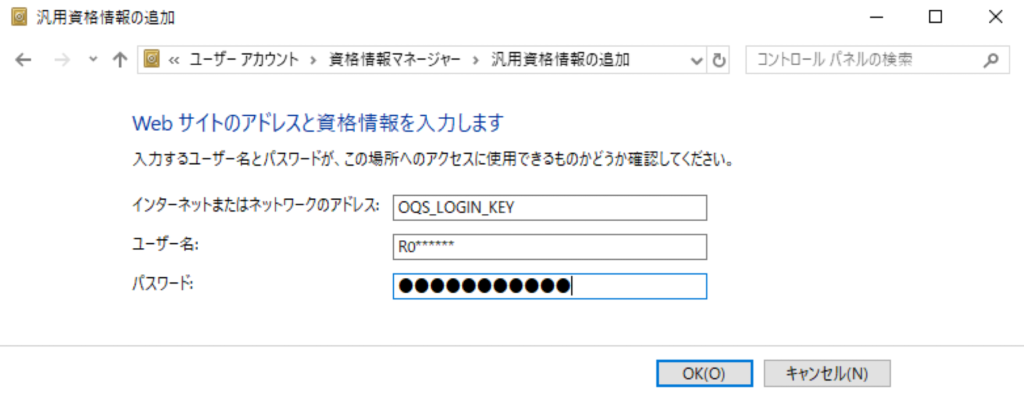 「インターネットまたはネットワークのアドレス」- OQS_LOGIN_KEY