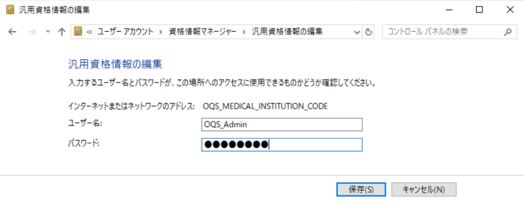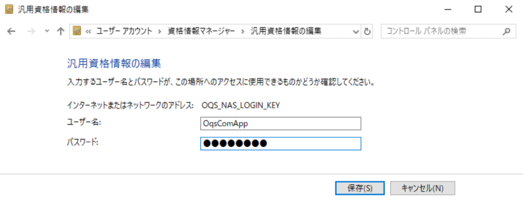 「ユーザー名」- 共用フォルダのユーザー名 ( OqsComAppの場合が多いのではないでしょうか)